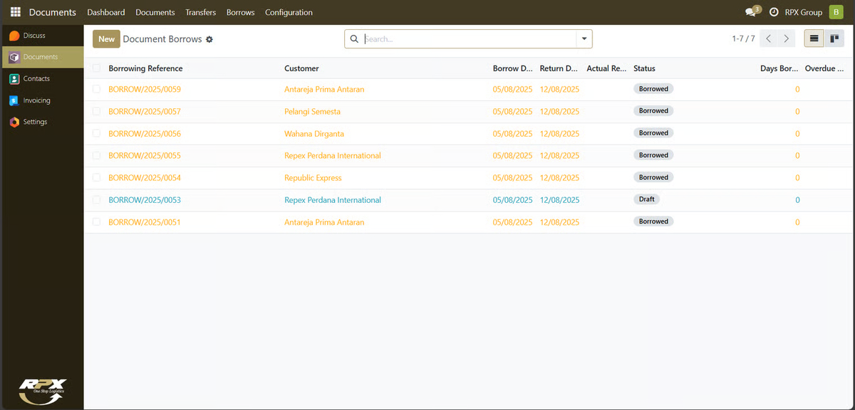 - Status dokumen (sudah dikembalikan atau masih dipinjam).